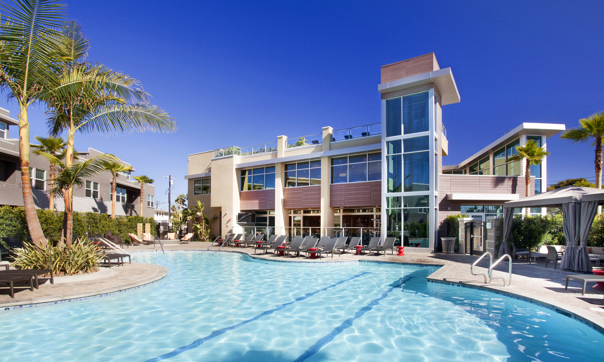 The Asher is comprised of two residential buildings on a 12.6 acre site, divided by a Linear Green which serves as a publicly-accessible, park like space in the city of Fremont. The Linear Green joins