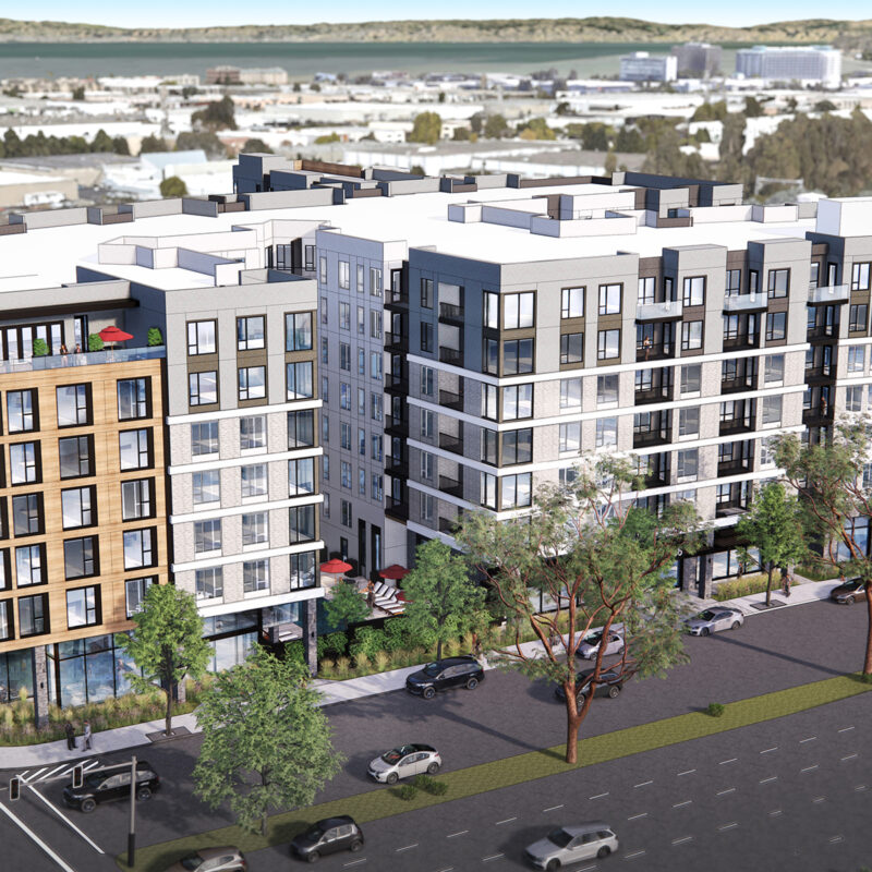 Caspian is the gateway site into the Brooklyn Basin master plan located at Embarcadero and Brooklyn Basin Way. The building is broken down into multiple facades inspired by the Oakland Estuary and surrounding industrial maritime