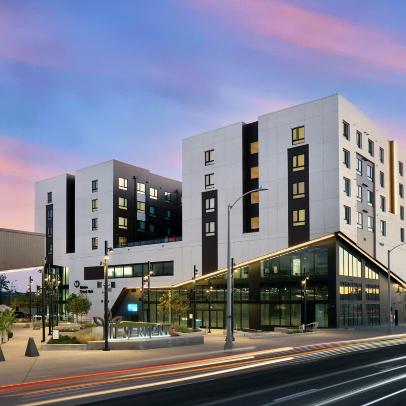 Evermont is an affordable transit-oriented mixed-use development, with 118 family units, and 62 homeless supportive senior units, 50K SF of ground level retail and restaurants, along with an on-site metro job training office, and resident