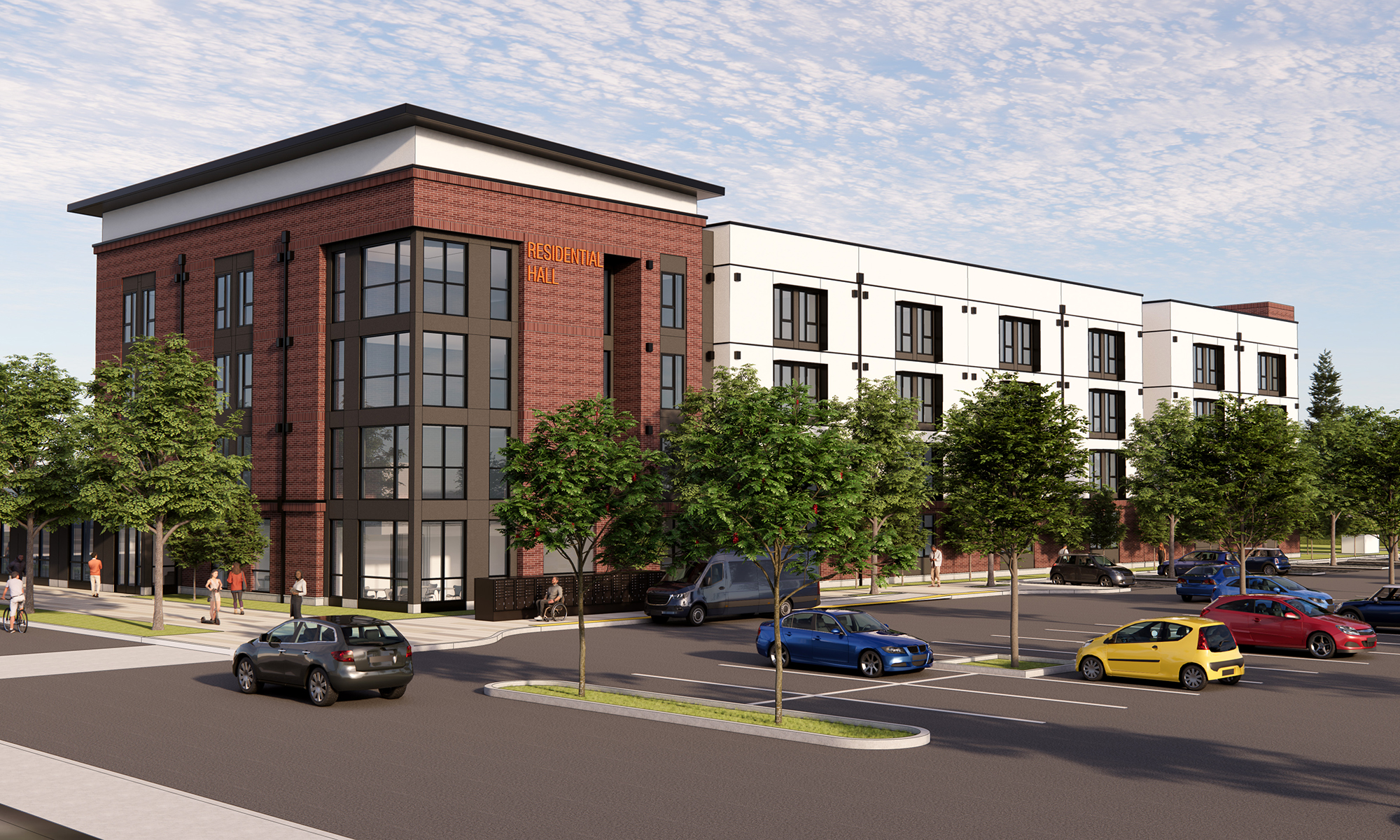 AmpliFi is designed to address three distinct edge conditions surrounding the property; while grounding the aesthetic in Fullerton’s history. With close proximity of the Fullerton Station rail line, AmpliFi emphasizes transit-oriented, urban, walkable edges. To