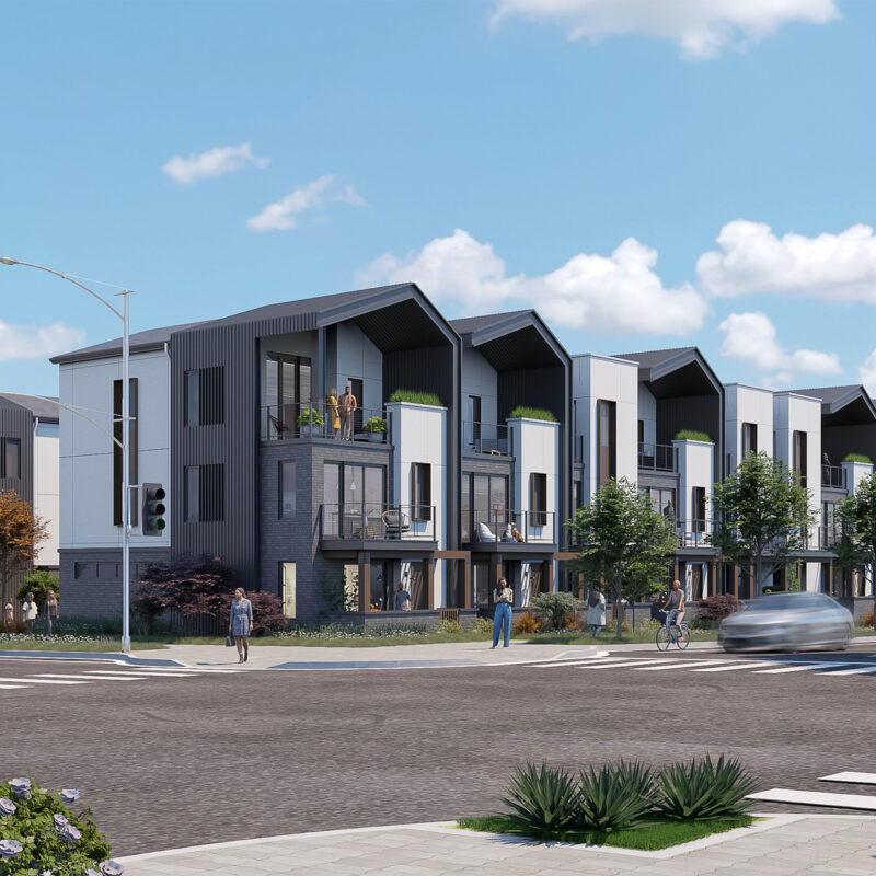 The Sacramento Bee redevelopment brings townhomes and single-family homes to neighboring sites in the heart of Sacramento. The North site consists of 60 three-story townhomes with tuck under garages, both conventional and tandem, on the