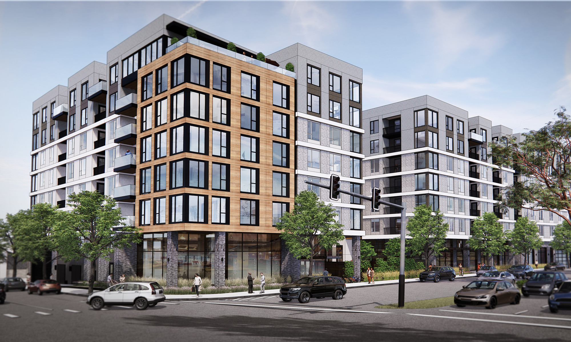5420 Sunset is a six-story mixed-use 735-unit apartment building that will also house 95,000 SF of ground level retail. The retail level will be home to an up-scale national brand grocer offering food service and